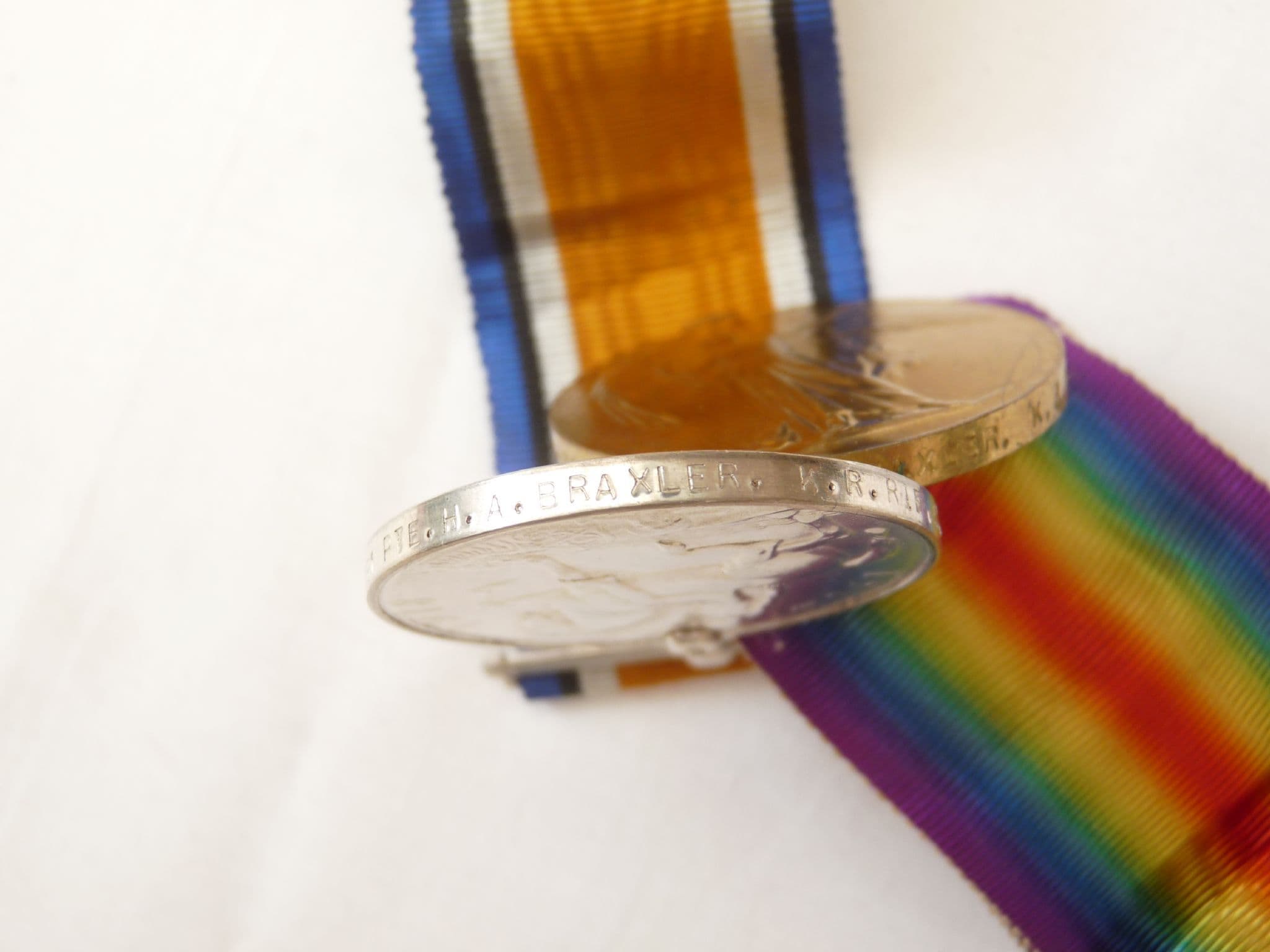 British WW1 Pair with silver Wound badge to King's Royal Rifle Corps. H.A. Braxler.