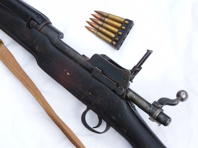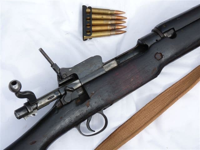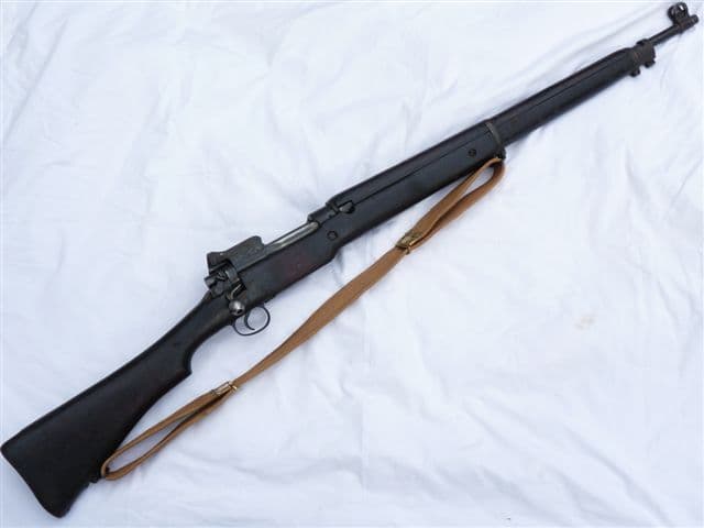 An early WW1 .303 calibre Winchester made Pattern 14 Enfield rifle, known more simply as the P14. A service rifle used during WW1 and issued to the Home Guard in WW2, it was declared obsolete in 1947. These rifles were also popular for sniper use due to their greater accuracy than the SMLE. Typical of  early examples this rifle has volley sights ( though not complete), and regimental butt disc (though blanked off!). Lovely authentic woodwork on this rifle, with just the usual knocks you'd expect from a service rifle that's nearly 100 years old!  Painted unit number on the butt, and evidence of other identifying paintwork around the breech that has been removed. Very good original blued finish on the steel makes this a lovely authentic piece of history.  Cocks and dry fires, and is fully strippable, and fitted with correct webbing  sling. Deactivated in the UK with Certificate to UK specification.
