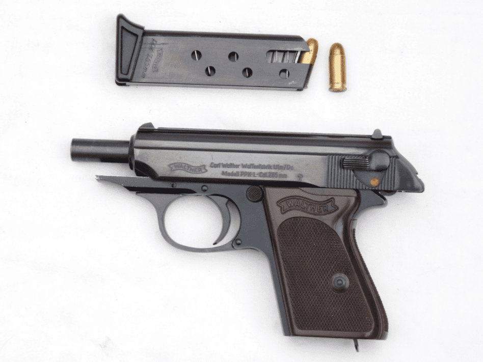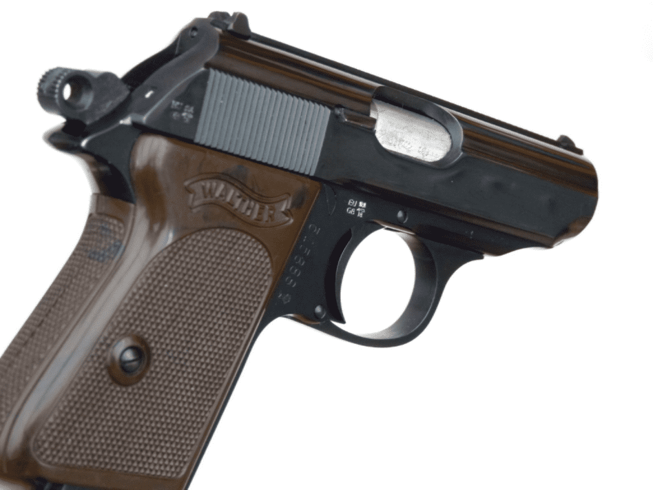 The Walther PP series of pistols were designed in 1929 by Carl Walther, and were issued to the German military, police, and Nazi Party officials during WW2. This variant, the PPK, was designed in 1931 and was popular for its compactness and ease of concealment, especially for non-military roles. Testimony to it's fine design is that it is still produced and in use today. This particular example is the PPK-L variant, with lightweight alloy frame, in excellent condition, with very good blacking to the frame and slide and very good grips. Dated 1965 on the ejector port, and correctly marked Walther magazine. Comes in original matched serial numbered box, complete with cleaning rod and an inert 7.65mm round to load into the magazine, this pistol can be cocked and dry-fired.  Deactivated in UK with Certificate to UK/EU specification.
