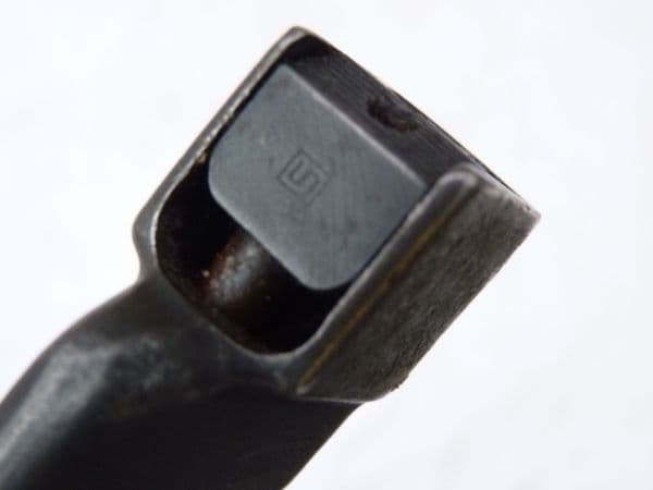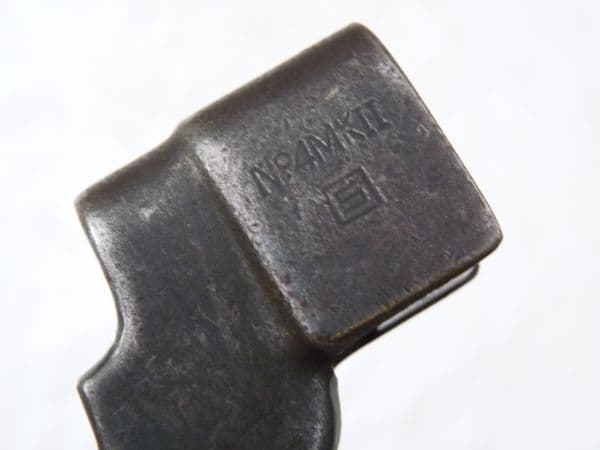 This is a No4 mk2 spike bayonet, better known as the 'pig-sticker', as fitted to the British Lee-Enfield rifle no4 mk1 and its derivatives, in very good condition along with it's dentfree scabbard. This is a Savage manufactured example, marked with the S symbol on the body and release button, so to be more exact, is for the mk1* rifle, made at Savage-Stevens, USA, but will of course fit all no4 rifles.  Webbing frog is also available at £5 to match this bayonet.