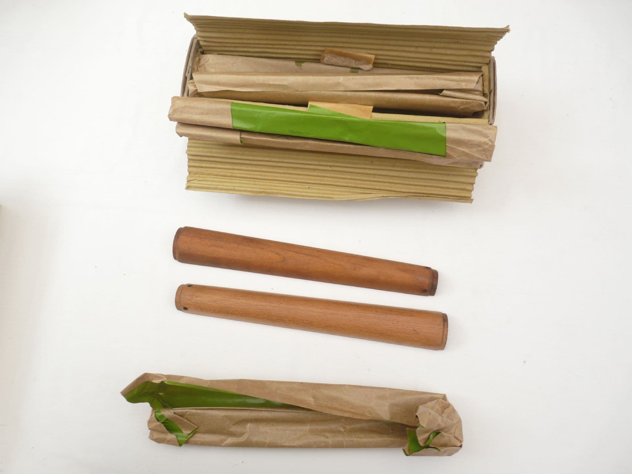 This is a genuine light beech Lee-Enfield No4 mk2 rear upper hand guard, variously marked on the inside with manufacturer codes and broadarrows. In good unused condition, still in protective wrapping.