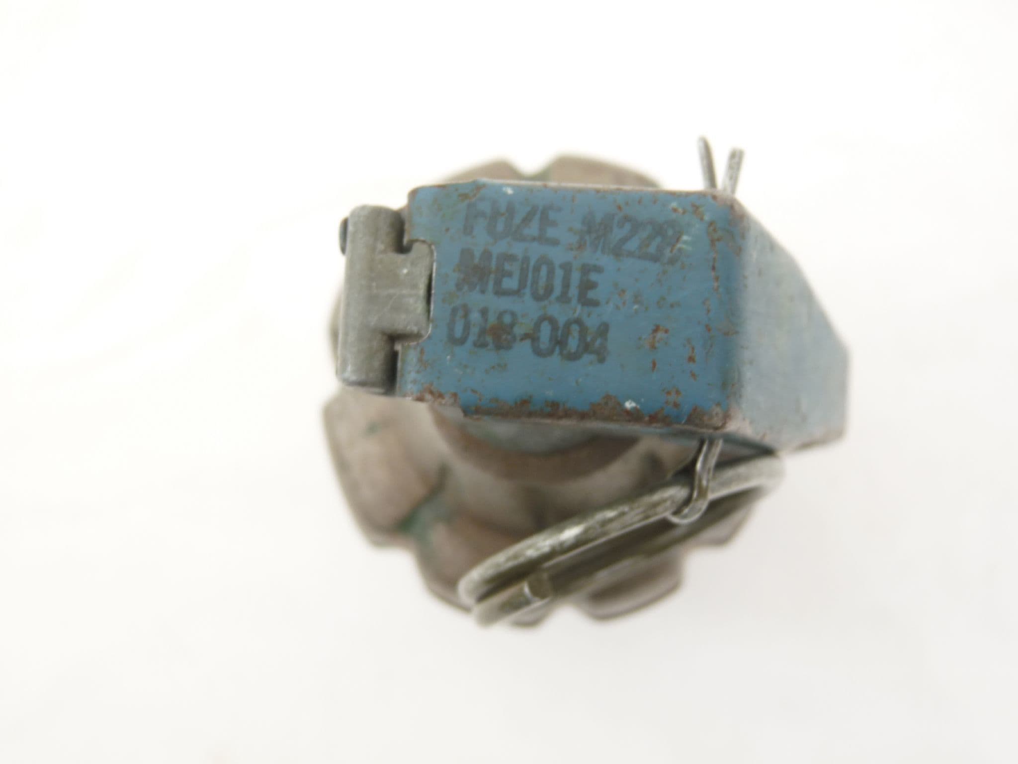 This is a RFX made M21 'Pineapple' practice grenade, base on the WW2 M2 grenade. Stamped RFX on the body for Richmond Foundry & Manufacturing Company or Richmond, Virginia USA, this grenade is in very good condition, with screw-in M228 dummy primer, marked Fuze M228 on the top, and is possibly from the Vietnam war era.
