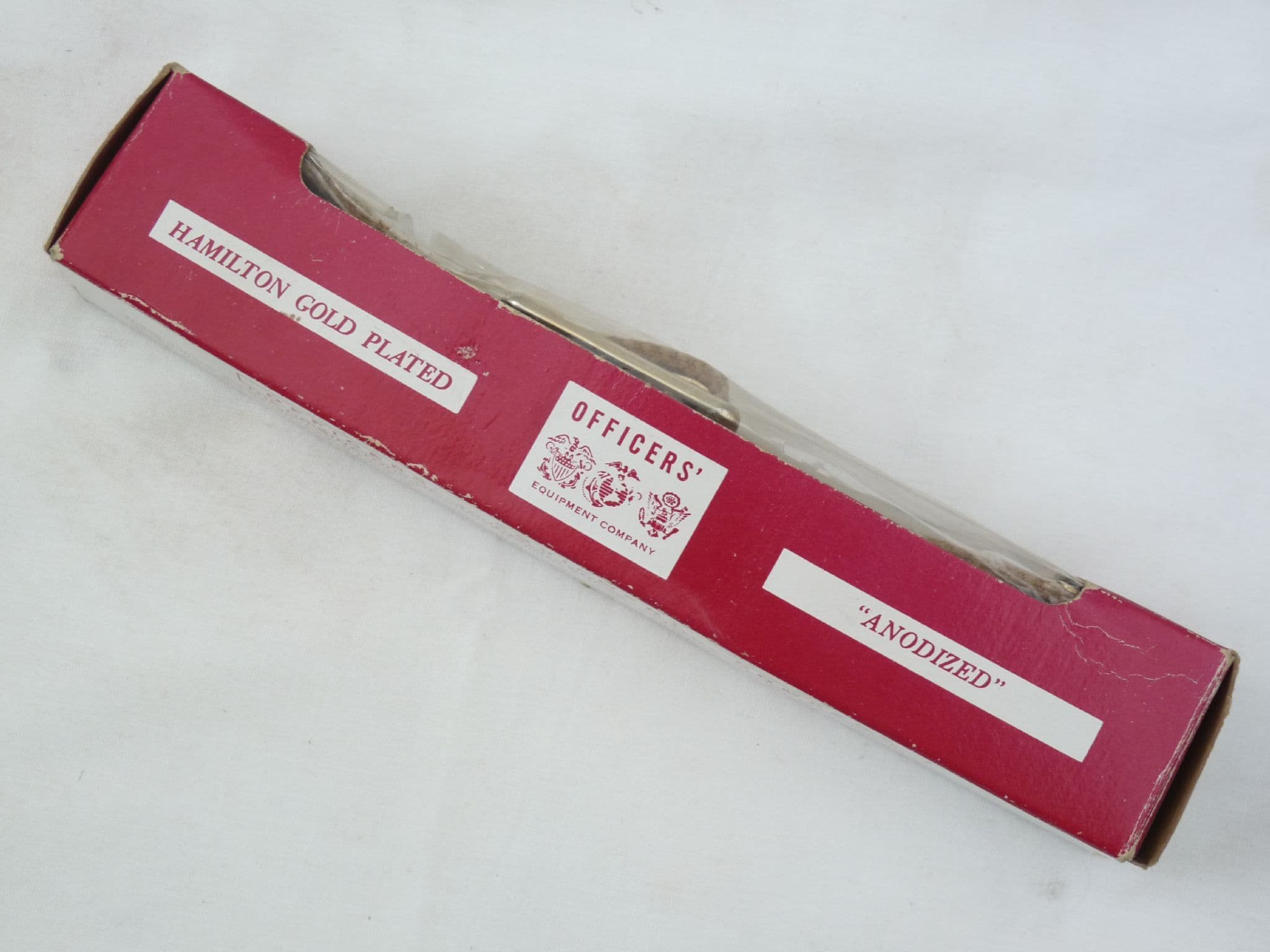 This is a U.S.M.C. officer's canvas belt with 'anodised' buckle, in it's original box, made by the Officer's Equipment Company, fitting up to a 40" waist. Not sure of the era, looking at the packaging I would say Vietnam War. Never worn, only removed from box for pictures. This belt is too good to wear!